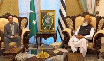پاکستان پیپلزپارٹی کے چیئرمین بلاول بھٹو زرداری نے جمعیت علمائے اسلام کے سربراہ مولانا فضل الرحمان سے ان کی رہائش گاہ پر ملاقات کی۔ ملاقات میں چیئرمین بلاول بھٹو زرداری اور جے یو آئی کے امیر مولانا فضل الرحمان نے مزید پڑھیں