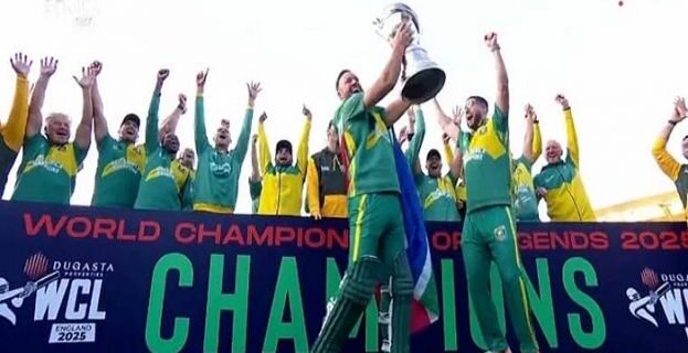 انگلینڈ میں کھیلی گئی ورلڈ چیمپئن شپ آف لیجنڈز (ڈبلیو سی ایل) کے فائنل مقابلے میں جنوبی افریقہ چیمپئنز نے پاکستان کو 9 وکٹوں سے شکست دے کر ٹائٹل جیت لیا ہے۔ برمنگھم کے میدان ایجبیسٹن میں کھیلے جانے والے مزید پڑھیں