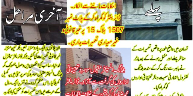 کراچی (ایم این تحقیقات/ MNP) دستگیر فیڈرل بی ایریا بلاک 15 میں ناقص تعمیرات کے مناظر۔پلاٹ نمبر 1507 بلاک 15 دستگیر فیڈرل بی ایریا اور 1509 بلاک 15 فیڈرل بی ایریا میں غیر قانونی تعمیرات اور بلڈنگ قوانین کی سنگین مزید پڑھیں
