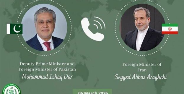 پاکستان کے وزیر خارجہ اسحاق ڈار اور ایران کے وزیر خارجہ عباس عراقچی کے درمیان ٹیلیفونک رابطہ ہوا جس میں خطے کی موجودہ صورتحال پر تبادلہ خیال کیا گیا۔ وزارت خارجہ پاکستان کے ترجمان کے مطابق دونوں رہنماؤں کے درمیان ہونے مزید پڑھیں