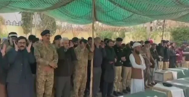 بلوچستان میں دہشت گردی کے تازہ واقعات میں ملوث دہشت گردوں کو ہلاک کرتے ہوئے شہید ہونے والے پولیس اہلکاروں کی نماز جنازہ آج بڑے پیمانے پر ادا کردی گئی۔ اس موقع پر وفاقی وزیر داخلہ محسن نقوی اور وزیر مزید پڑھیں
