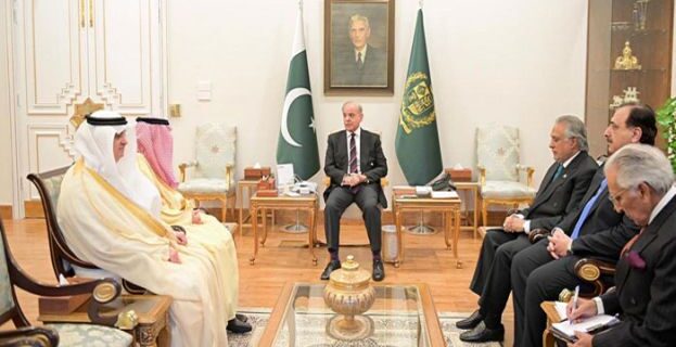 سعودی وزیر خارجہ شہزادہ فیصل بن فرحان نے وزیراعظم شہباز شریف سے ملاقات کی جس میں وزیراعظم نے پاکستان کی جانب سے سعودی عرب کے ساتھ مکمل یکجہتی کا اعادہ کیا۔ وزیر خارجہ اسحاق ڈار، مشیرقومی سلامتی لیفٹیننٹ جنرل محمد عاصم ملک بھی ملاقات میں موجود تھے۔اعلامیےکے مطابق دونوں رہنماؤں کی ملاقات خوشگوار اور دوستانہ ماحول میں ہوئی، ملاقات میں… اعلامیےکے مطابق وزیر اعظم نے ولی عہد محمد بن سلمان کے لیے بھی نیک خواہشات کا پیغام دیا، وزیراعظم نےموجودہ بحران کےدوران سعودی عرب کےغیرمعمولی تحمل کو سراہا، وزیر اعظم نے حالیہ دنوں میں ولی عہد کے ساتھ اپنی گفتگوکا حوالہ بھی دیا۔ وزیر اعظم نے سعودی وزیر خارجہ کو موجودہ بحران کے دوران پاکستان کی سفارتی کوششوں سے آگاہ کیا، فیصل بن فرحان کو امریکا و ایران کو مذاکرات کی میز پر لانے کی کوششوں سے آگاہ کیا۔ اعلامیےکے مطابق وزیر اعظم نے مسلم امہ میں سعودی عرب کے قائدانہ کردار پر زور دیا اور اسلامی ممالک کے درمیان اتحاد کی ضرورت کو اجاگرکیا۔ سعودی وزیر خارجہ نے وزیر اعظم سے اظہار تشکر کیا اور خطے کی صورتحال پر اپنے مؤقف سے آگاہ کیا۔ اعلامیےکے مطابق پاکستان اور سعودی عرب نے خطے میں امن و استحکام کےلیے مشترکہ کوششوں اور قریبی رابطے جاری رکھنے پر اتفاق کیا ہے۔
