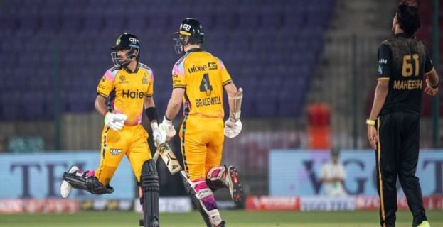 پاکستان سپر لیگ (پی ایس ایل) 11 میں پشاور زلمی نے حیدرآباد کنگز مین کو سنسنی خیز مقابلے کے بعد 4 وکٹوں سے شکست دے دی۔ نیشنل اسٹیڈیم کراچی میں کھیلے گئے میچ میں پشاور زلمی نے 146 رنز کا ہدف 6 وکٹوں کے نقصان پر میچ کی آخری گیند پر حاصل کیا۔ زلمی کی جانب سے کپتان بابر اعظم 43 رنز بنا کر نمایاں رہے۔ کوشل مینڈس 27، مائیکل بریس ویل 25، فرحان یوسف 15، محمد حارث 11 اور عبدالصمد 1 رن بنا کر آؤٹ ہوئے۔ افتحار احمد 15 اور عامر جمال 6 رنز کے ساتھ ناٹ آؤٹ پویلین لوٹے۔ کنگز مین کی جانب سے صائم ایوب نے 2 کھلاڑیوں کو آؤٹ کیا۔ محمد علی، حنین شاہ، حسان خان اور مہیش ٹھیکشانا نے 1، 1 حاصل کی۔ اس سے قبل حیدرآباد کنگز مین کی ٹیم پشاور زلمی کی دعوت پر پہلے بیٹنگ کرتے ہوئے 18.2 اوورز میں 145 رنز بنا کرآؤٹ ہوگئی۔ کنگز مین کی جانب سے کوشل پریرا 58 رنز بنا کر نمایاں رہے۔ کپتان مارنس لبوشین 27، معاذ صداقت 17، صائم ایوب 14، عرفان خان 9، حسان خان 9 جبکہ عثمان خان، مہیش ٹھیکشانا اور حنین شاہ بغیر کوئی رن بنائے آؤٹ ہوئے۔ پشاور زلمی کی جانب سے افتحار احمد اور سفیان مقیم نے 4، 4 کھلاڑیوں کو آؤٹ کیا۔ عامر جمال نے ایک وکٹ حاصل کی۔