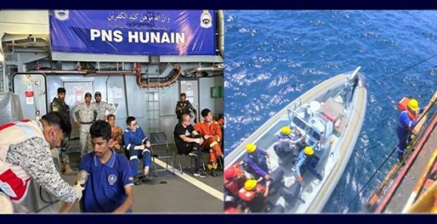 پاک بحریہ نے شمالی بحیرہ عرب میں کامیاب سرچ آپریشن کرتے ہوئے 18افراد پر مشتمل غیر ملکی عملے کو بحفاظت ریسکیو کرلیا۔ پاک فوج کے شعبہ تعلقات عامہ( آئی ایس پی آر) کے مطابق پاک بحریہ نے شمالی بحیرہ عرب میں کامیاب سرچ اینڈ ریسکیو آپریشن کیا۔ تجارتی بحری جہاز ایم وی گولڈ آٹم سے ہنگامی سگنل موصول ہوئے تھے۔ آئی ایس پی آر نے بتایا کہ ہنگامی سگنل کے بعد 18افراد پر مشتمل عملے کو بحفاظت ریسکیو کرلیا گیا، ریسکیو کیے گئے افراد میں چین، بنگلادیش، میانمار، ویتنام اور انڈونیشیا کے شہری شامل ہیں۔ آئی ایس پی آر کا کہنا ہے کہ پاک بحریہ کے جہازپی این ایس حنین نے انتہائی پیشہ ورانہ مہارت اور تجربے کا مظاہرہ کیا اور سرچ اینڈ ریسکیو آپریشن انجام دیا۔ آئی ایس پی آر کے مطابق جہاز پر موجود ماہر ٹیم نے طبی امداد فراہم کی، آگ بجھانے میں مدد دی۔ پاک بحریہ نے نقصان کا جائزہ لیا،عملے کو بحفاظت نکالنے میں کامیابی حاصل کی۔ آئی ایس پی آر کا کہنا ہے کہ ریسکیو کیے گئے تمام افراد کو طبی سہولتوں کی فراہمی، اپنے اپنے ممالک واپسی کیلئے بحفاظت کراچی منتقل کر دیا گیا ہے۔ آئی ایس پی آر نے کہا کہ پاک بحریہ سمندر میں کسی بھی ہنگامی صورتحال میں مؤثر مدد کیلئے ہمہ وقت تیار ا ور پرعزم ہے۔