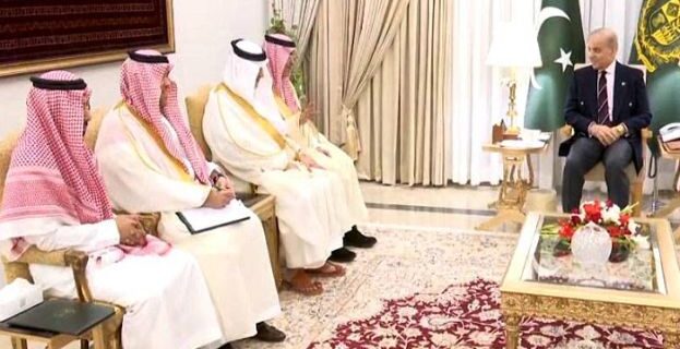 وزیراعظم محمد شہباز شریف سے سعودی وزیر خزانہ محمد بن عبداللہ الجدعان نے وزیرِاعظم ہاؤس میں ملاقات کی ہے، ملاقات میں نائب وزیراعظم و وزیر خارجہ محمد اسحاق ڈار اور چیف آف ڈیفنس فورسز فیلڈ مارشل جنرل سید عاصم منیر بھی شریک ہوئے۔ وزیراعظم شہباز شریف نے خادم الحرمین الشریفین شاہ سلمان بن عبدالعزیز آل سعود کے لیے نیک تمناؤں… وزیراعظم شہباز شریف نے ولی عہد شہزادہ محمد بن سلمان بن عبدالعزیز آل سعود سے ملاقات کے دوران حالیہ ٹیلیفونک گفتگو کا تذکرہ بھی کیا۔ اس موقع پر وزیراعظم شہبا زشریف نے کہا کہ سعودی عرب کی پاکستان کے لیے مسلسل معاشی و مالی معاونت قابلِ قدر ہے، پاکستان اور سعودی عرب ہر مشکل وقت میں ایک دوسرے کے ساتھ کھڑے رہے ہیں۔ پاکستان نے سعودی عرب کے ساتھ تجارت، سرمایہ کاری اور معاشی تعاون بڑھانے کے عزم کا اعادہ کیا، سعودی وزیر خزانہ نے پاکستان کے ساتھ دیرینہ برادرانہ تعلقات مزید مضبوط بنانے کے عزم کا اظہار کیا۔