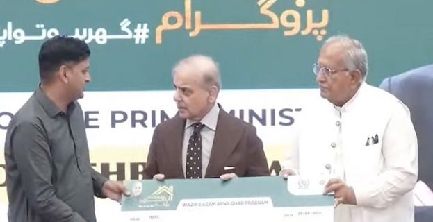 وزیراعظم شہباز شریف نے وزیراعظم اپنا گھر اسکیم کا باضابطہ اجرا کرتے ہوئے قرض کے لیے اہل افراد کے درمیان بینک چیک تقسیم کر دیئے۔ اپنا گھر اسکیم کا اطلاق صوبوں ،گلگت بلتستان اور آزاد کشمیر میں ہو گا ، گھر کی خریداری کیلئے 1 کروڑ روپے 20 سال کی مدت کیلئے فراہم کیے جا سکیں گے۔ تقریب سے خطاب کرتے ہوئے وزیراعظم شہباز شریف نے کہا کہ اپنا گھر اسکیم کا اطلاق صوبوں ،گلگت بلتستان اور آزاد کشمیر میں ہو گا ، گھر کی خریداری کیلئے 1 کروڑ روپے 20 سال کی مدت کیلئے فراہم کیے جا سکیں گے۔ 25 لاکھ ، 50 لاکھ، 75 لاکھ یا پھر 1 کروڑ روپے تک قرض حاصل کیا جا سکے گا ، پہلے 10 سال میں 5 فیصد فکسڈ مارک اپ اور اگلے دس برس میں نارمل مارک اپ ہو گا۔ 25 لاکھ روپے قرض لینے والے افراد کو ماہانہ 16 ہزار 499 روپے ،50 لاکھ والوں کو 32 ہزار 997 روپے، 75 لاکھ روپے والوں کو 49 ہزار 497 اور ایک کروڑ قرض لینے والوں ماہانہ 65 ہزار 996 روپے قسط ادا کرنا ہو گی۔ قرض حاصل کرنے کیلئے شناختی کارڈ ہولڈرز اور پہلے سے مقروض نہ ہونا شرط ہے ،قرض کی رقم سے دس مرلہ پلاٹ کی خریداری یا دس مرلہ بنا ہوا گھر خریدا جا سکے گا ، 90 فیصد فنانسنگ حکومتی اسکیم کے تحت اور دس فیصد انفرادی طور پر کرنا ہو گی ، اسلامک و کمرشل بینک، مائیکروفنانس بینک، ہاؤس بلڈنگ فنانس کمپنی سے قرض مل سکے گا۔ شہباز شریف نے کہا کہ ریاست یا کسی بھی حکومت کیلئے عام آدمی کوچھت کی فراہمی اہمیت کی حامل ہے، اپنا گھر اپنا اسکیم کا حجم 3.2 کھرب روپے ہو گا، اپنا گھر اسکیم کے تحت پہلا ہدف 50 ہزار گھروں کیلئے قرض ہے۔ انہوں نے کہا کہ آج چیک لینے والوں میں گلگت بلتستان اور خیبرپختونخوا کے لوگ بھی شامل ہیں ،اپنا گھر اسکیم کامیاب بنانے کیلئے بے حد محنت کی گئی ،یہ منصوبہ کسی خاص کیلئے نہیں ، ماہانہ بنیادوں پر اپنا گھر اسکیم کا خود جائزہ لوں گا۔ وزیراعظم نے کہا کہ تعمیراتی شعبے سے معیشت کا پہیہ چلتا ہے،قرض کی فراہمی پر بینکوں کی بھی حوصلہ افزائی کی جائے گی، جو بینک اسکیم میں لیڈ لیں گے وہ ہمارے سروں کے تاج ہوں گے، ان بینکوں کو 14 اگست کو ایوارڈ دیں گے۔ انہوں نے مزید کہا کہ اسکیم سے انڈسٹری اور کامرس چلے گی اور ملک میں خوشحالی کے دروازے کھلیں گے ، بجٹ میں بڑی چیزیں لے کر آئیں گے۔